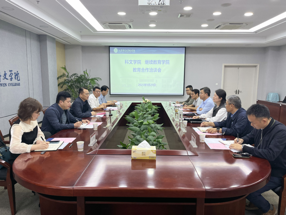 9月29日,江苏师范大学党委常委、副校长黄德志带领江苏师范大学继续教育学院院长朱景坤等一行五人莅临学院,就教育合作事宜开展深入交流与指导。学院在行政楼106会议室举行座谈会,院长张立荣、党委书记刘晓莲、副院长张建华及相关职能部门负责人参加会议。会议由张立荣主持。