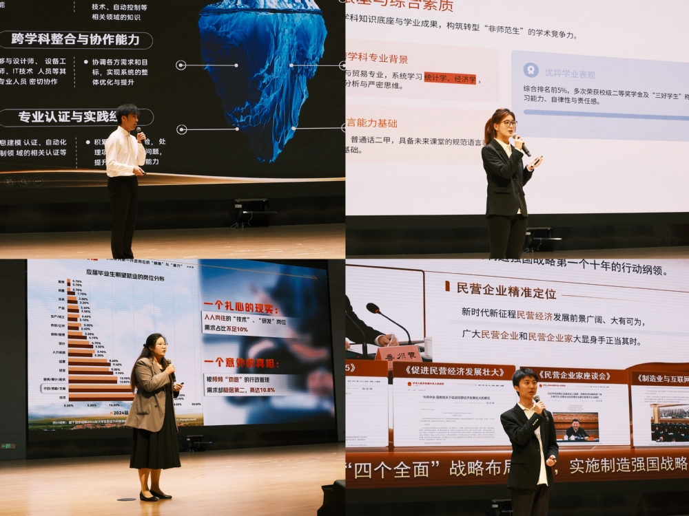 本届大赛设“成长赛道”与“就业赛道”,吸引了全院1000余名学生参与。经初赛选拔,共25名选手晋级决赛。比赛现场,选手们结合国家战略和区域经济产业发展需求,围绕个人职业目标、能力结构、实践路径与岗位匹配度等内容进行展示,定位清晰、内容务实、表达流畅,充分展现科文学子良好的职业素养与规划意识。
