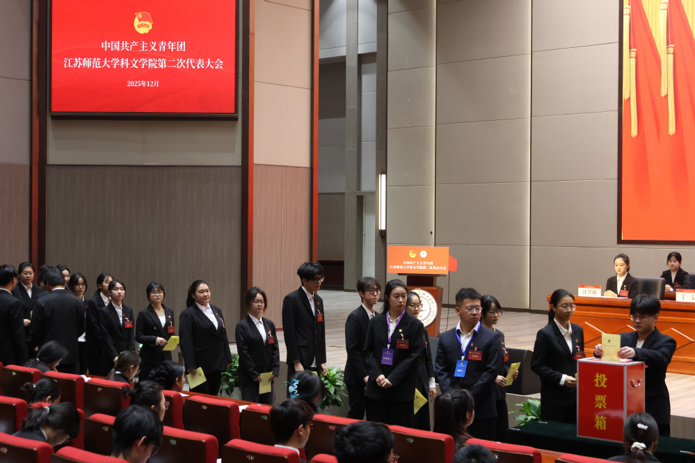 在12月11日上午的第二次全体会议上,大会依次审议通过了大会选举办法(草案),并选举产生共青团江苏师范大学科文学院第二届委员会;会议还审议通过了工作报告决议(草案)。大会在《国际歌》声中圆满闭幕。