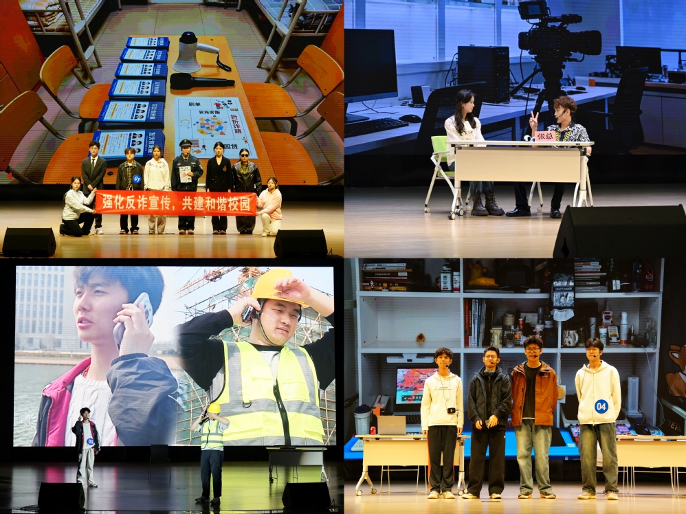 经各二级学院自主报名及预选赛选拔,8支参赛团队脱颖而出晋级决赛。参赛剧目紧扣反诈防骗主题,聚焦刷单返利、冒充熟人、投资理财、求职陷阱、AI换脸等校园高发电信网络诈骗类型展开创作。各参赛团队以鲜活的角色塑造、紧凑的剧情推进和真挚的情感表达,生动展现了当代大学生对反诈防骗的深刻认知。