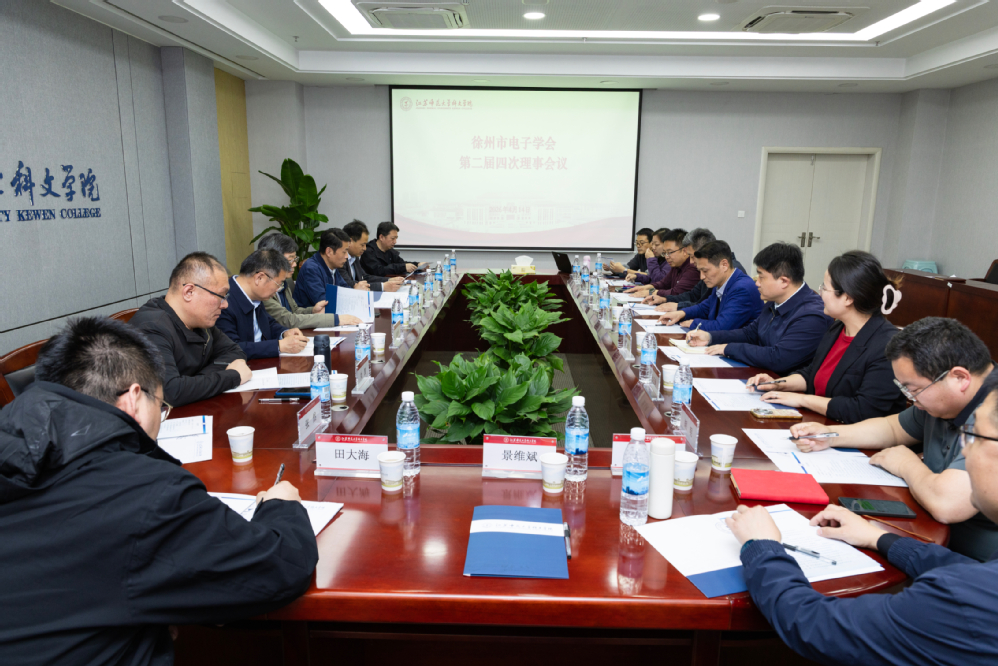 4月14日下午,徐州市电子学会二届四次理事会在学院崇德楼106会议室圆满举行。徐州市电子学会理事长、秘书长及各理事单位代表,科文学院副院长张建华,电气与智能制造学院院长王柏华、党总支书记沈健、副院长金鑫等出席会议,会议由学会秘书长仇坤主持。