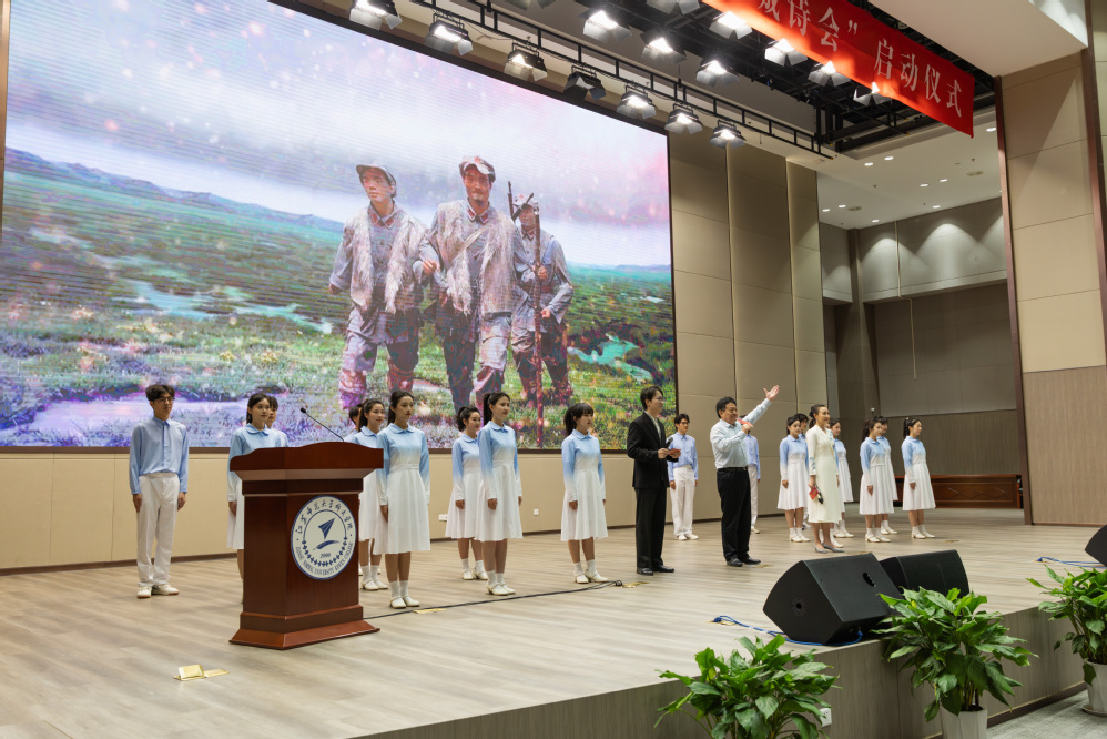 朱国军在致辞中指出,文化是高校的精神内核,诗词作为中华文脉赓续传承的重要载体,更是凝聚民族精神、厚植人文情怀、传递文化力量的关键纽带。徐州作为国家历史文化名城,文脉绵延悠长、红色积淀深厚,古典诗词的人文风骨与红色基因的初心使命,共同铸就了这座城市独特的精神气质与发展底色。“彭城诗会”是学院落实立德树人根本任务、创新思政教育形式的积极探索。品牌以“诗承汉韵・潮涌新声”为核心理念,依托徐州深厚的历史文化底蕴,将中华优秀传统文化、革命文化和社会主义先进文化融入诗歌诵读与创作,着力打造“行走的思政课”。今年恰逢红军长征胜利90周年、中国共产党成立105周年,学院将年度主题定为“万马奔腾向复兴”,全年围绕“四季诗章”开展全民阅读周名家领读、毕业诗会、暑期“声动家乡”征集、“长征颂・诵长征”专题等系列活动。聚焦“彭城诗会”品牌建设与育人工作,他提出三点要求:一是以诗铸魂,依托徐州丰厚的红色资源,打造沉浸式“行走的思政课”,推动红色教育与人文涵养双向融合、互促共进;二是以诗育心,构建常态化诗词育人体系,依托经典诵读、诗词创作等多元活动,持续提升师生综合素养、锤炼精神品格;三是以诗赋能,打破校园地域边界,深化校地校企协同联动,用诗词浸润城市气质,推动诗韵风尚与城市发展相融共生、双向奔赴。