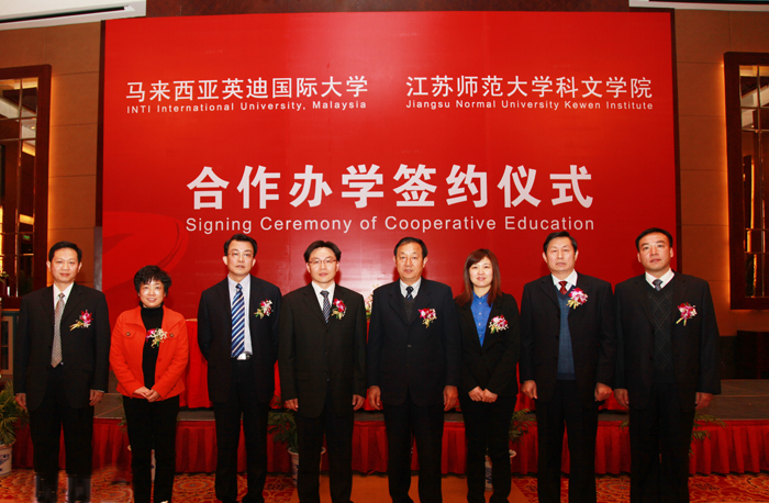 12月12日下午,徐州开元宾馆会议厅内灯光璀璨,喜气洋洋,科文学院与马来西亚英迪国际大学合作办学协议签约仪式在此隆重举行。马来西亚英迪国际大学副校长林玮,中国区主任王晓怡,江苏师范大学副校长、科文学院董事长何保全,科文学院领导费春、程大中、杨在华、顾振中、刘毓江及部分师生代表参加了此次签约活动。签约仪式由科文学院党委书记程大中主持。