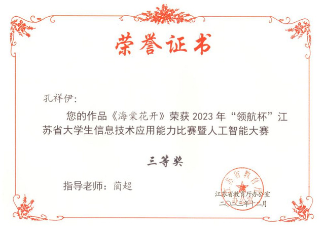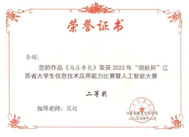 近日,江苏省教育厅下发《关于公布2023年“领航杯”江苏省大学生信息技术应用能力比赛暨人工智能大赛获奖结果的通知》。我院推荐报送的微视频类作品《马庄香包》《海棠花开》分别荣获二、三等奖,特向全院师生报喜。