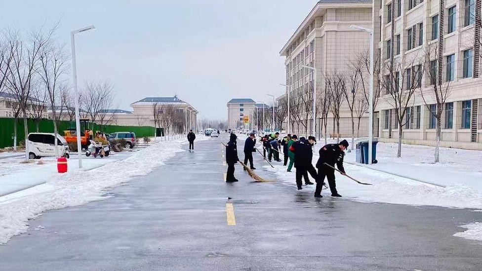 物业、安保人员清扫道路积雪