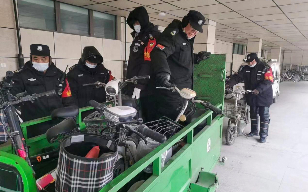 安保人员清理无牌电动车