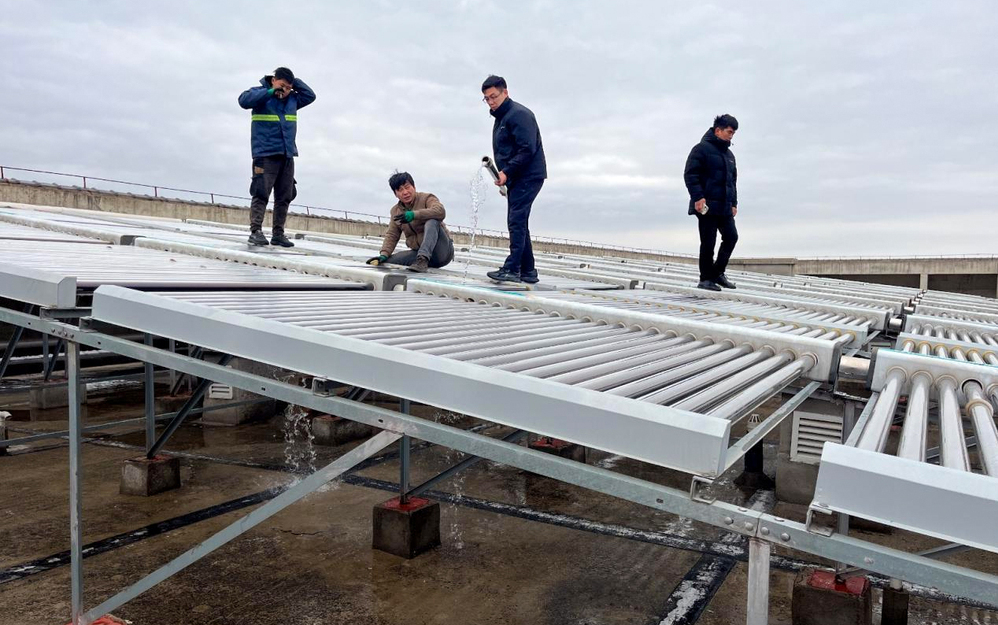 5.太阳能集热管清洗。假期组织人员对35000根太阳能集热管及700个集热管联箱进行拆卸清洗,进一步提高换热效率,延长设备使用寿命。