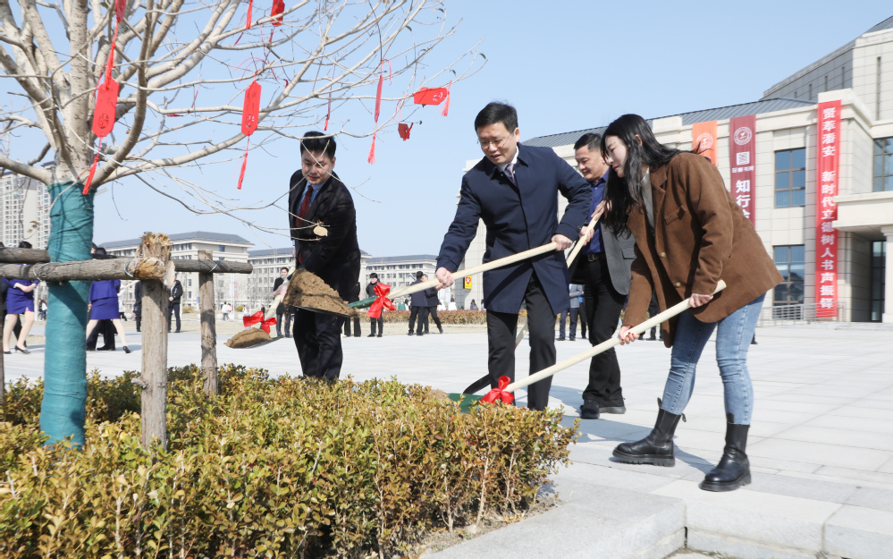 书院揭牌后,师生代表为庆祝书院成立所栽植的四株金桂树培土。桂树是崇高、荣誉、友好和吉祥的象征,祝福科文学子人生“折桂”。选择植树节当天成立书院,取十年树木百年树人之意。四个书院以“崇德、求真、至善、尚美”命名,寓意以德为先,培养求真、向善、尚美科文人,旨在引领全体师生走进书院、礼赞文化、赓续文脉,在习近平总书记视察过的潘安湖畔,始终高扬理想之帆,坚定奋斗目标,涵养精神品格,汲取蝶变力量,培育时代新人。