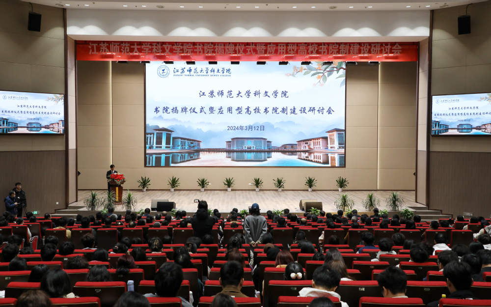 3月12日上午,学院书院揭牌仪式暨应用型高校书院制建设研讨会在潘安湖校区图书馆学术报告厅举行。江苏师范大学党委常委、副校长商亮,华东师范大学、东南大学、西安交通大学等9所高校来院嘉宾,学院领导班子全体成员、全体管理干部,书院辅导员以及学业、成长导师代表、学生代表等共计500余人共同见证四个书院的揭牌。