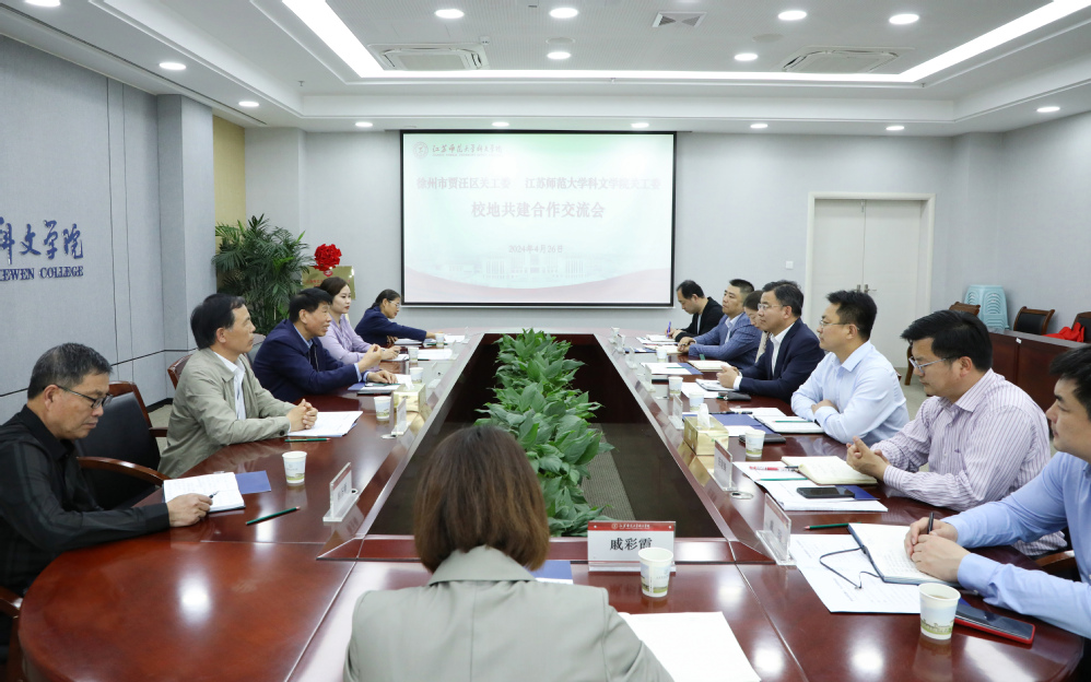4月26日上午,学院关工委与贾汪区关工委在行政办公楼106会议室举行校地共建合作交流会。徐州市关工委常务副主任宋农村、贾汪区关工委主任周常善,院党委书记、关工委主任张立荣及校地双方相关职能部门负责人参加交流。