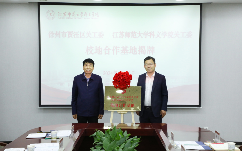 会上,学院关工委与贾汪区关工委签订合作共建协议书,宋农村与张立荣共同为校地合作基地揭牌。
