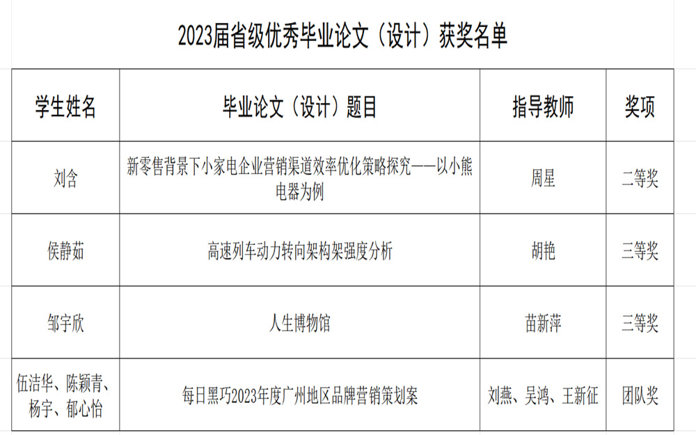 近日,江苏省教育厅公布了2023年度江苏省普通高校优秀本专科毕业论文(设计)评选结果,我院喜获二等奖1项、三等奖2项、优秀团队毕业论文(设计)1项。