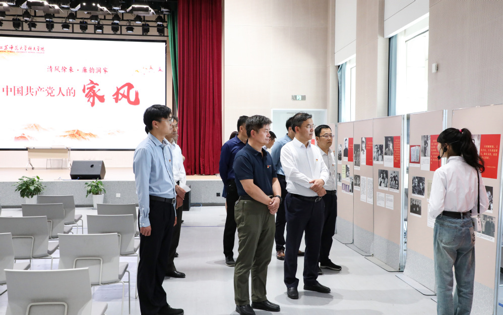 5月13日,学院领导班子成员在学院大学生活动中心参观了由徐州市纪委主办,学院纪委承办的“清风徐来·廉韵润家——中国共产党人的家风”展。展览分“老一辈革命家的家风”“革命先烈的家风”“新中国成立以来优秀共产党员的家风”三个单元,共展出毛泽东、周恩来等三十多位共产党人的家规、与家人的合影、往来书信、谈话记录稿等档案图片。学院党委要求领导干部要带头深入学习贯彻习近平总书记关于家庭家教家风建设的重要论述,传承与发扬好革命前辈的红色家风,清白做人、勤俭齐家、干净做事、廉洁从政,管好自己和家人,涵养新时代共产党人的良好家风。