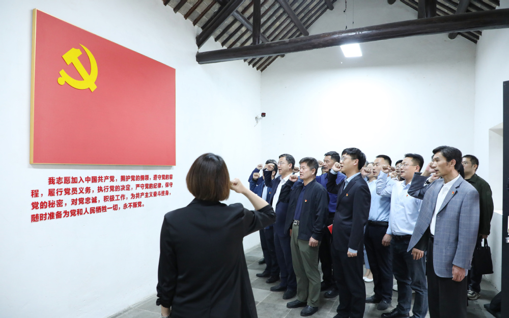 5月11日,院党委党纪学习教育读书班开班仪式在铜山区北望村渡江战役总前委旧址举行,党委书记张立荣主持开班仪式并作动员讲话。张立荣指出,举办此次读书班,是学院贯彻落实党中央决策部署,全面加强纪律建设的需要,也是切实提高学习效果的需要。学院将深入学习贯彻习近平总书记关于党纪学习教育的重要讲话和重要指示精神,扎实开展党纪学习教育,教育引导广大党员干部学纪、知纪、明纪、守纪,纵深推进全面从严治党,为推进学院高质量发展提供坚强纪律保障。张立荣强调,读书班学员要在学院党纪学习教育中先学一步、深学一层,做到打头阵、当先锋、作表率。他对读书班学员提出三点要求:一要提高政治站位学,把党纪学习作为一项重大政治任务,从领导干部到每个支部、每名党员,做到领学、共学、全员学;二要原原本本学、逐字逐句学,把党规党纪作为“枕边书”“案头卷”;三要带着问题导向学,对照《条例》,把自己摆进去、把职责摆进去、把工作摆进去。开班仪式后,学院领导班子全体成员依次领读《条例》全文,用2个小时时间带领全体读书班成员将《条例》逐章逐条学习一遍。学习结束后,全体学员重温入党誓词,以庄严承诺强化初心使命。