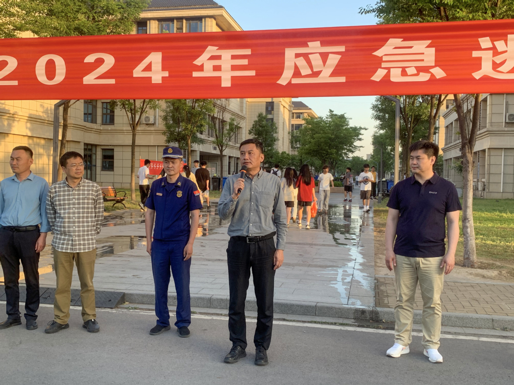 2024年5月12日是我国第十六个“防灾减灾日”。为增强学院师生的消防安全意识和应对突发事件的处置能力,5月15日下午,后勤保障部联合至善书院,在学生公寓F、H组团以“人人讲安全、个个会应急——着力提升基层防灾避险能力”为主题,精心组织了一场学生宿舍消防疏散演练。副院长李旭、贾汪区消防救援大队参谋朱开盟、贾汪区天工路消防救援站的消防员代表、学院相关职能部门负责人、各二级学院师生代表、学院大学生安全工作协会志愿者、至善书院学生会志愿者参加此次演练。