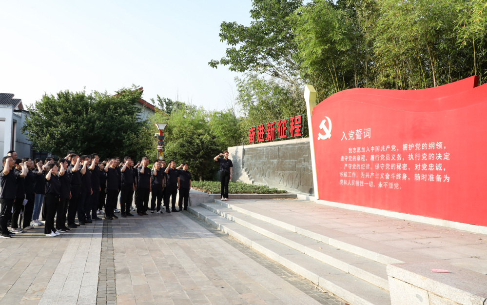 在沈浩同志先进事迹陈列馆前重温入党誓词