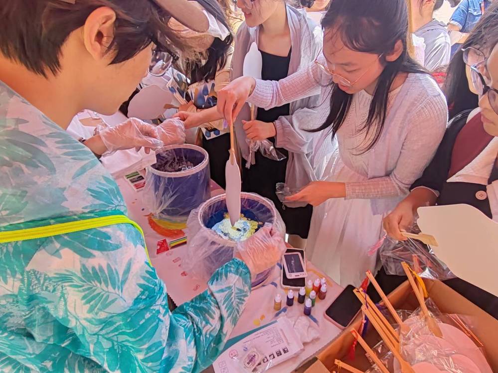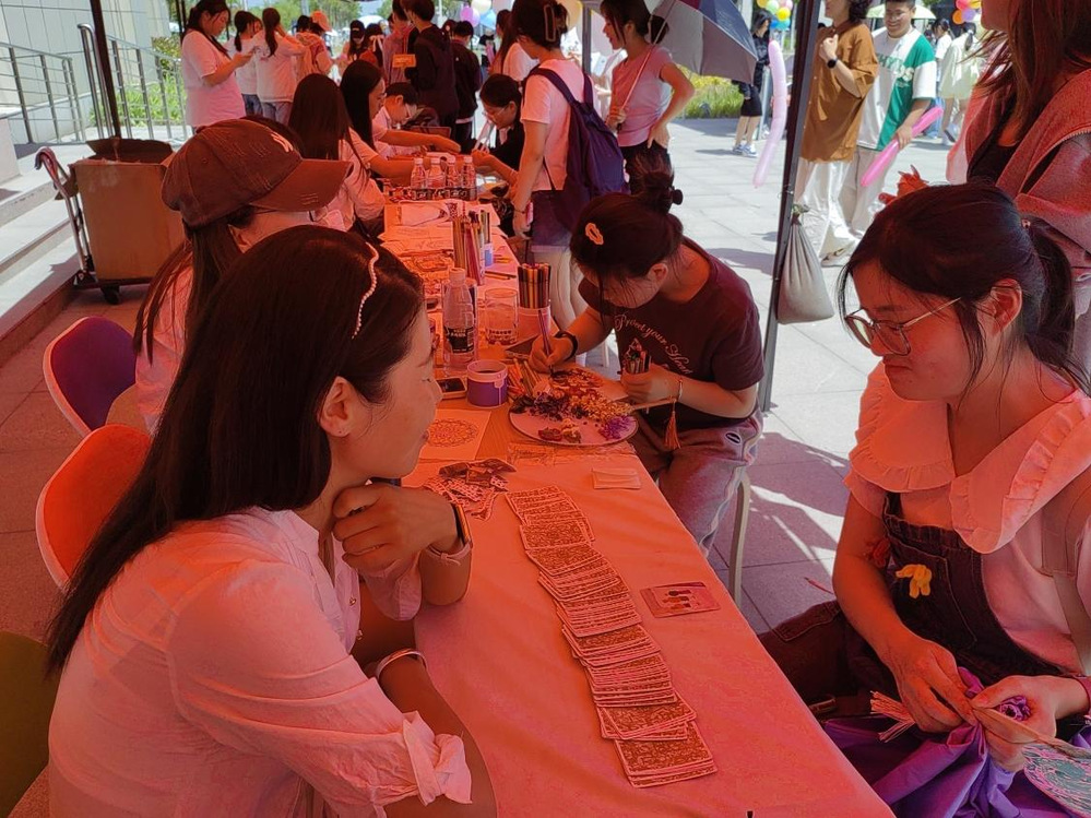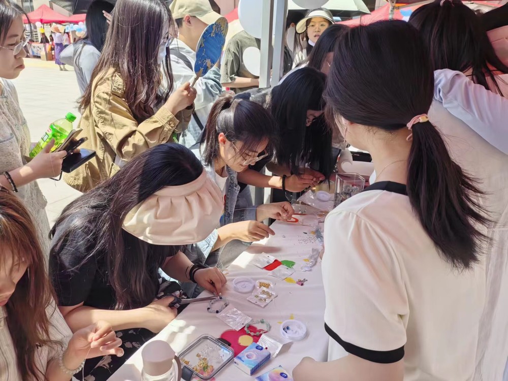开幕式后,学院主要领导与师生共同参加了心理集市活动。本次心理集市包含曼陀罗涂色、OH卡牌探索、手工漆扇、不倒森林、轻功水上漂等20余项活动,吸引了近两千名同学参与。