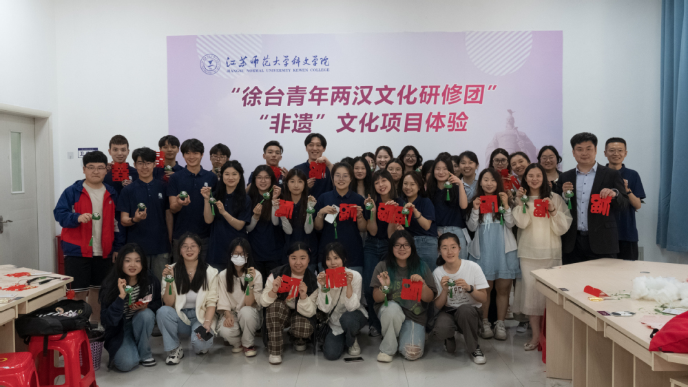 为增进互信、同学共行,学院策划了团辅破冰活动、“非遗”文化体验、两汉文化探访、感知徐州新发展等系列活动。在破冰活动中,通过分享方言、画出心语、创意拍照、“框”住记忆等富有趣味的互动游戏,研修团同学们之间迅速消减了陌生感,增进了彼此了解。在贾汪区马庄村手艺老师的指导下,研修团同学们动手制作了“粽子”香包和“福”字剪纸,蕴含着对台师大师生们的深切祝福。在集“两汉三绝”于一体的徐州汉文化景区,研修团的同学们惊叹“有俑有陵有汉画、有山有水有古刹”,感受狮子山楚王陵叹为观止的文物遗产和历史价值。在徐州汉画像石馆,研修团同学们共同感受了汉画像石的古朴厚重和历史传承。在徐工矿业机械有限公司、徐工集团、江苏协鑫硅材料科技发展有限公司,研修团同学们在生产现场亲身感受硬核科技智能智造的高效和技术产业深度融合碰撞出的火花,对大陆日新月异的发展有了直观感受。在学院第二十届十佳歌手暨师生青春歌会上,两岸学子合唱一曲《朋友》,全场气氛热烈,掌声经久不息。同学们还用City walk的方式,探访了文庙、回龙窝、戏马台等文化地标,深入了解古彭城的历史文化和新徐州的城市发展现状。