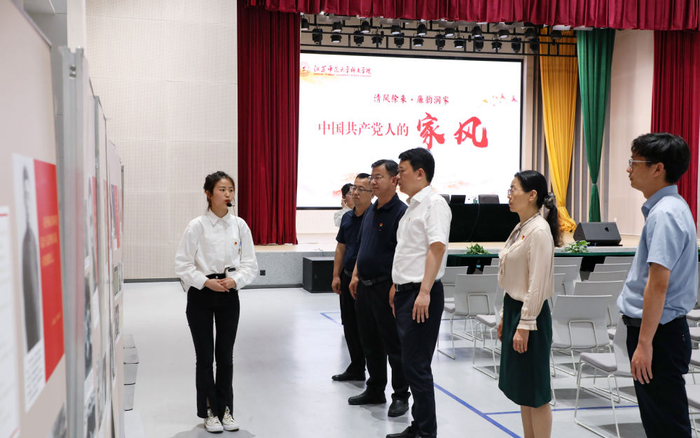 闾浩一行还参观了由徐州市纪委主办、学院纪委承办的“清风徐来·廉韵润家——中国共产党人的家风”展,以及学院首届廉洁文化宣传月系列活动“青年向清廉,共筑廉洁梦”文创设计展、“传承优良家风,厚植家国情怀”主题海报设计展、“清风润万家,廉韵启新程”廉洁征文获奖作品展等。