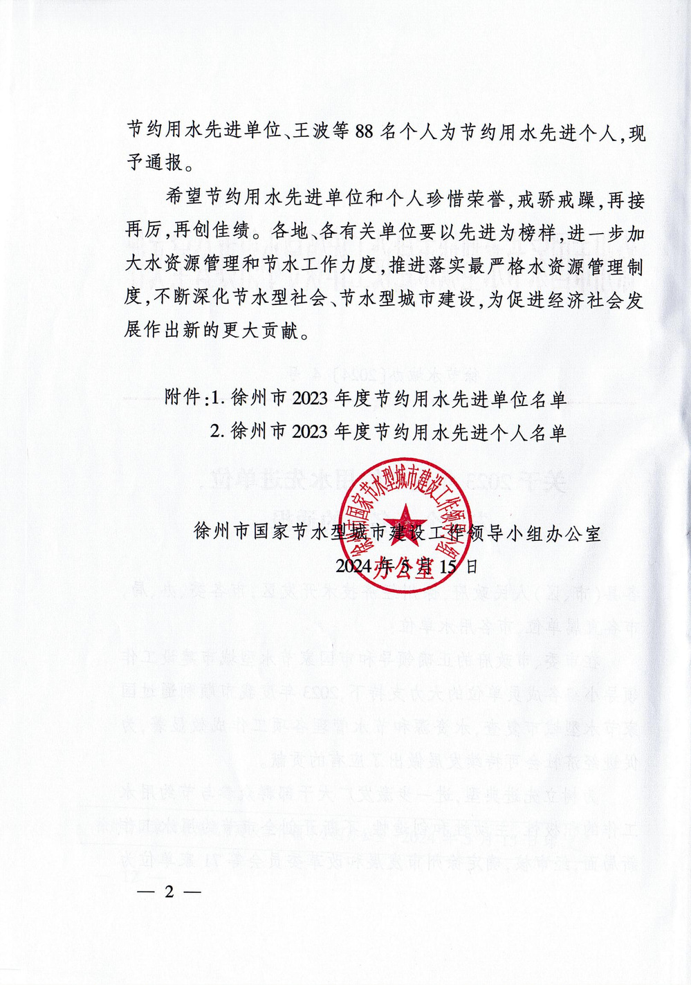 学院荣获徐州市2023年度“节约用水先进单位”荣誉称号