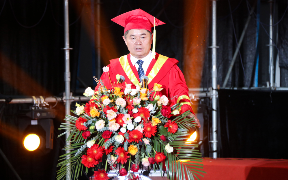 院长胡福年在致辞中向3576名毕业生圆满完成学业表示衷心祝贺。离别之际,他勉励同学们要坚定信念,志存高远,在担当中绽放自信人生。在实干担当的赛道上矢志奋斗,以“实干兴邦”“功成不必在我、功成必定有我”的精神面貌投身祖国建设伟大事业。要勤学苦练,踏实干事,在奋斗中铸就精彩人生,在错综复杂的世界大环境中,做到“不畏浮云遮望眼”“乱云飞渡仍从容”。要把握机遇,勇毅笃行,在坚守中成就幸福人生。把“小我”融入“大家”,在追求不凡的精彩事业中成就幸福人生,从而无愧于父母的养育,无愧于老师的教诲,无愧于祖国人民对新时代青年的殷切期望。