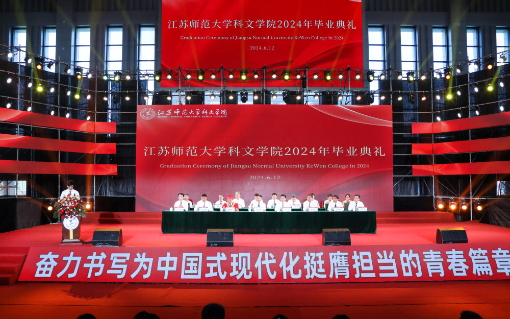 六月蝉鸣又起,青衿之志可期。6月12日上午9时,学院2024年毕业典礼在潘安湖校区体育馆举行。江苏师范大学校长周汝光,江苏师范大学副校长、科文学院董事长商亮,学院领导班子全体成员出席毕业典礼。2024届毕业生、学院各单位负责人、辅导员、教师代表、学生家长代表共计2000余人参加典礼。