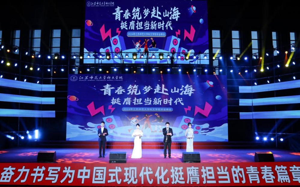 十里潘安景,四载岁月歌。6月12日晚7时,“青春筑梦赴山海 挺膺担当新时代”江苏师范大学科文学院2024年毕业晚会在潘安湖校区体育馆举办。学院党委书记张立荣、党委副书记丁力出席晚会。2024届毕业生、二级学院及相关部门老师参加晚会。