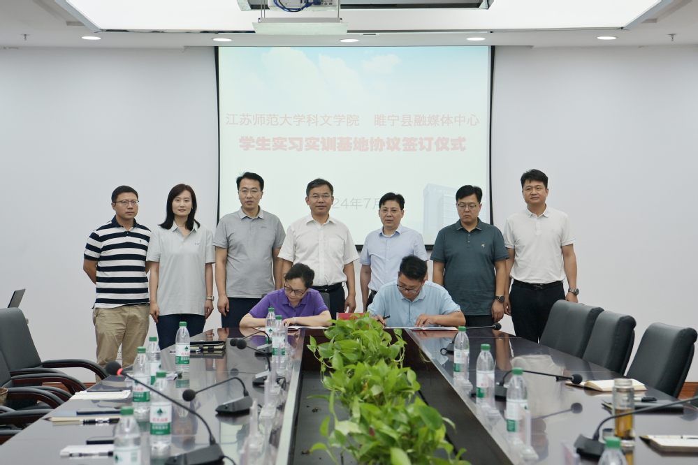 17日上午,考察组前往睢宁县融媒体中心走访。座谈会上,洪海涛对张立荣一行来睢宁考察、调研表示热烈欢迎。他表示,科文学院长期致力于办人民满意的教育,办学资源丰富、专业设置科学、人才培养特色鲜明,双方合作空间巨大,希望校地双方在原有良好合作基础上,持续深化交流,实现互惠共赢。张立荣从办学历程、专业建设、师资队伍、内部治理等方面,详细介绍了学院办学最新情况。他指出,学院以建设高水平、有特色、创新型应用技术学院为办学目标定位,主动适应地方经济社会和高等教育发展需求,期待双方在人才培养、大学生实习实训、毕业生就业创业等方面加强合作,推进校地校企深度融合,实现互惠共赢。随后,双方签署了大学生就业实习实训基地框架合作协议,并授牌。会前,考察组还参观了直播车、综艺演播大厅、制作中心、新闻演播室、广播中心。