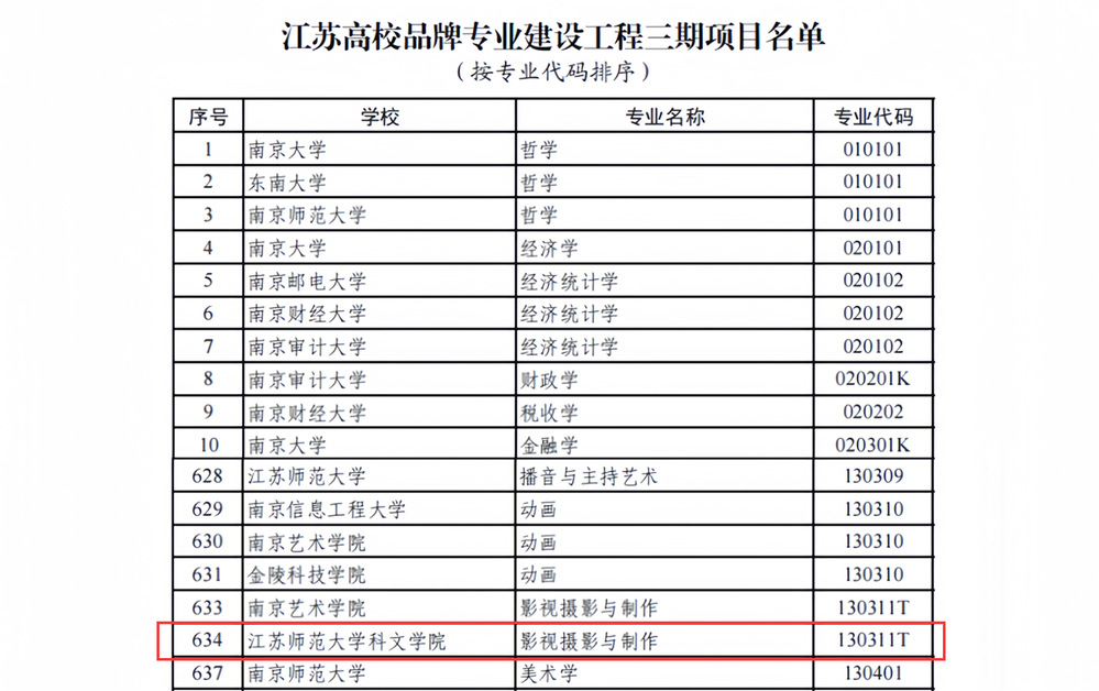 近日,江苏省教育厅公布了《江苏高校品牌专业建设工程三期项目名单》,我院影视摄影与制作专业成功入选,成为继软件工程、市场营销专业后的第三个省级品牌专业建设点。